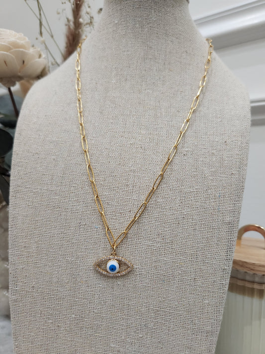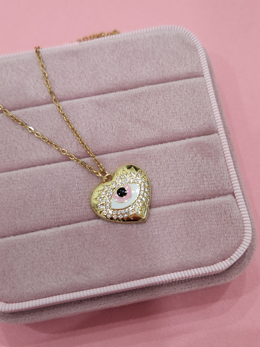 Evil Eye Heart Protection Bling Necklace