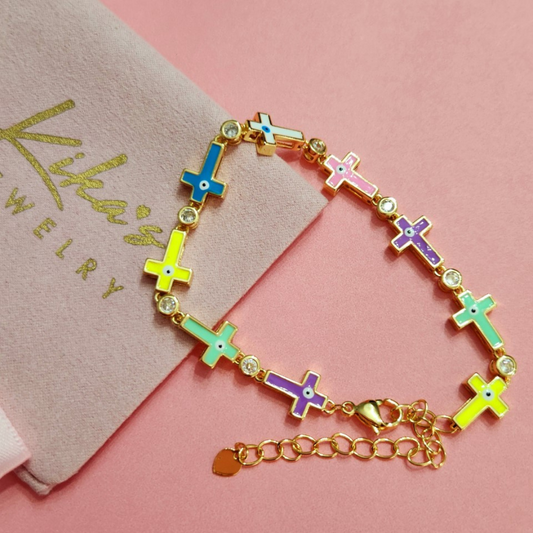 Multi Colored Cross Evil Eye Bracelet