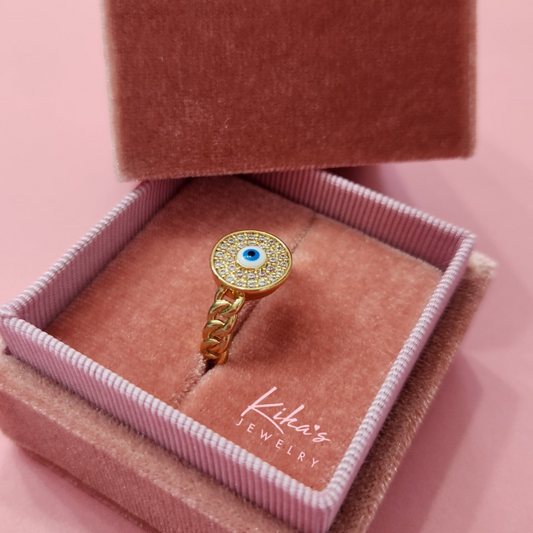 Evil Eye Round Gold Ring