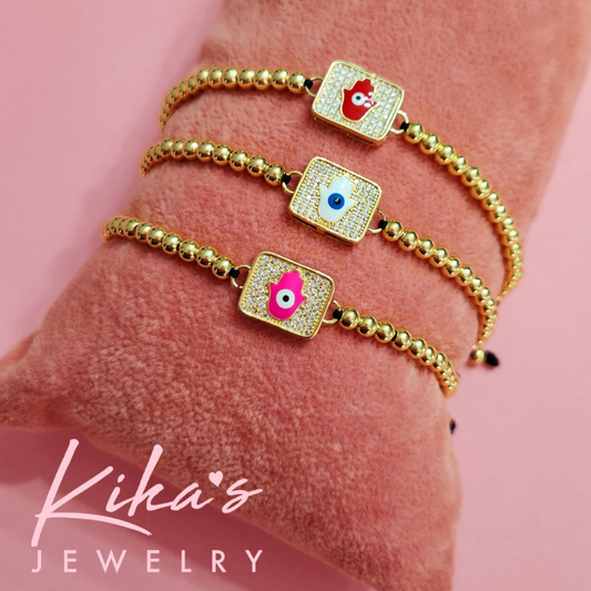 Evil Eye Hamsa Square Bracelet