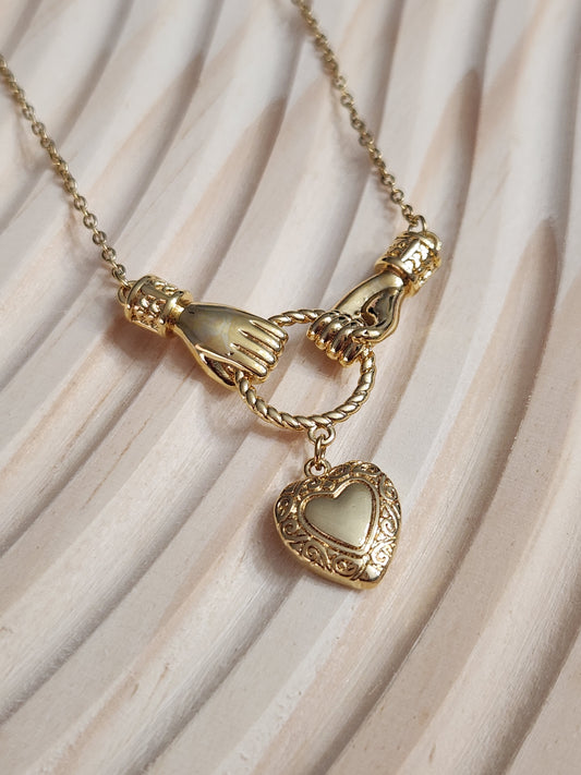 Sold outHeart Locket Hands Necklace